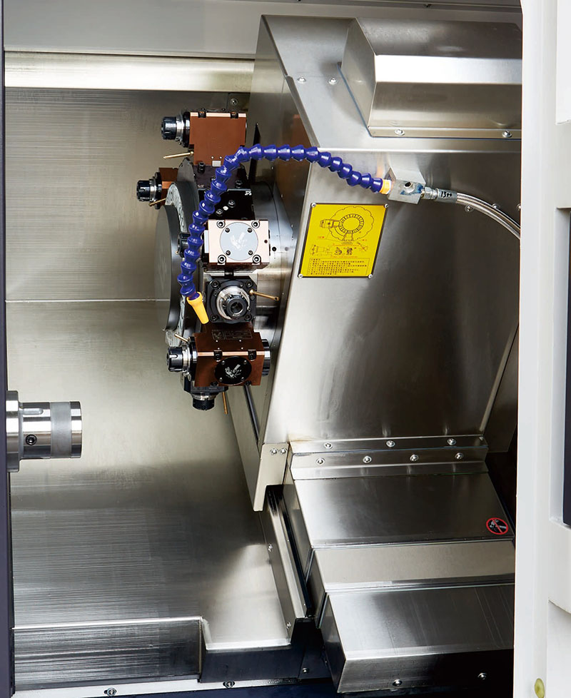 Поред тога, опрема има и ове практичне карактеристике: 0° напојна глава може постићи стабилан рад од 8000 о/мин, 90° погонска глава номинална радна брзина од 6500 о/мин; држач алата усваја дизајн преноса модула без зупчаника, елиминишући утицај извора топлоте из корена, што може ефикасно гарантовати тачност обраде; функције глодања и стругања су интегрисане, које могу лако да задовоље захтеве машинске обраде сложених материјала као што су нерђајући челик, легура титанијума и угљенични челик; Систем за уклањање чипова усваја интегрисани дизајн са стране + позади, флексибилан начин уградње, може се произвољно одабрати у складу са стварним радним условима.